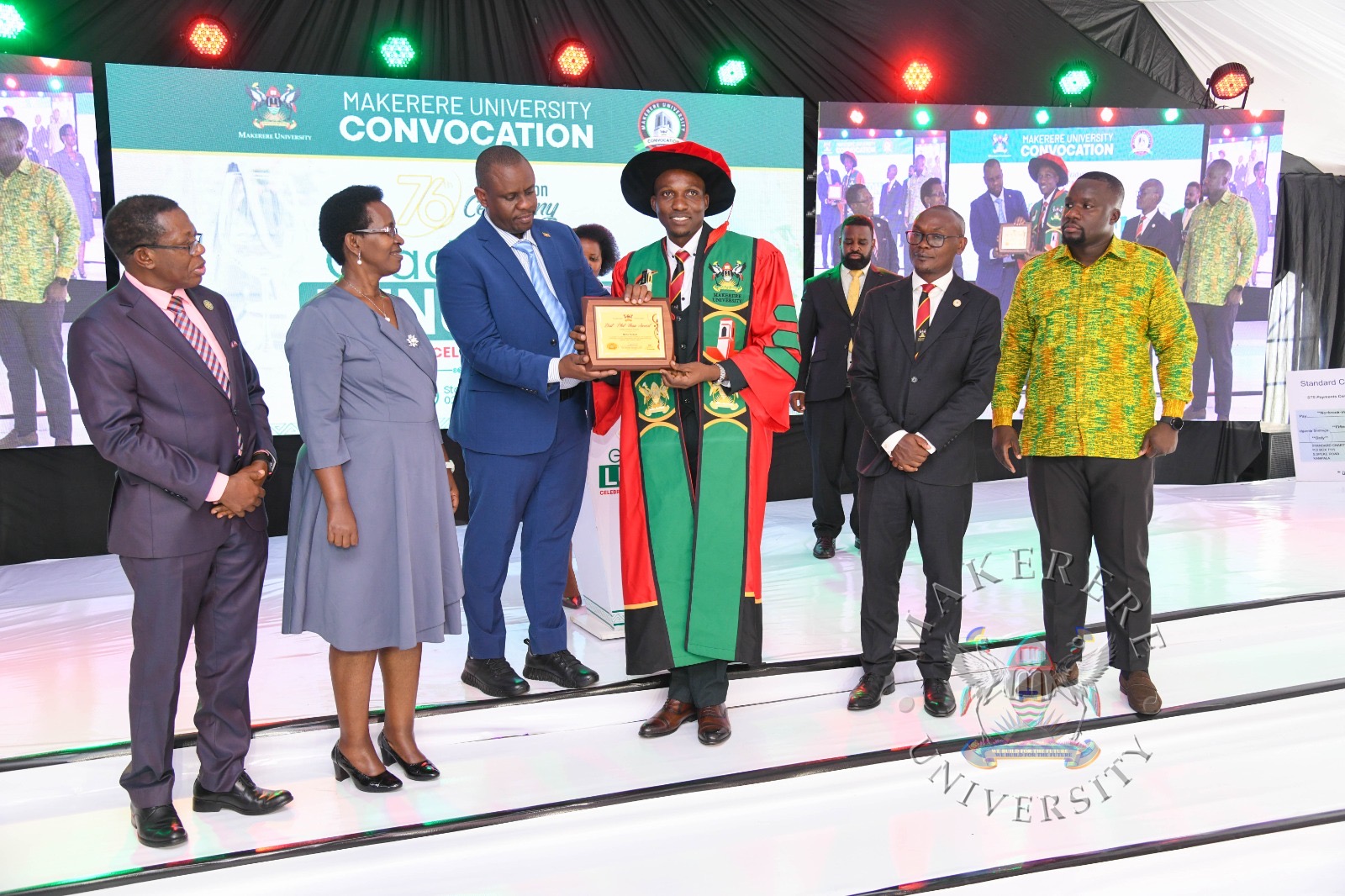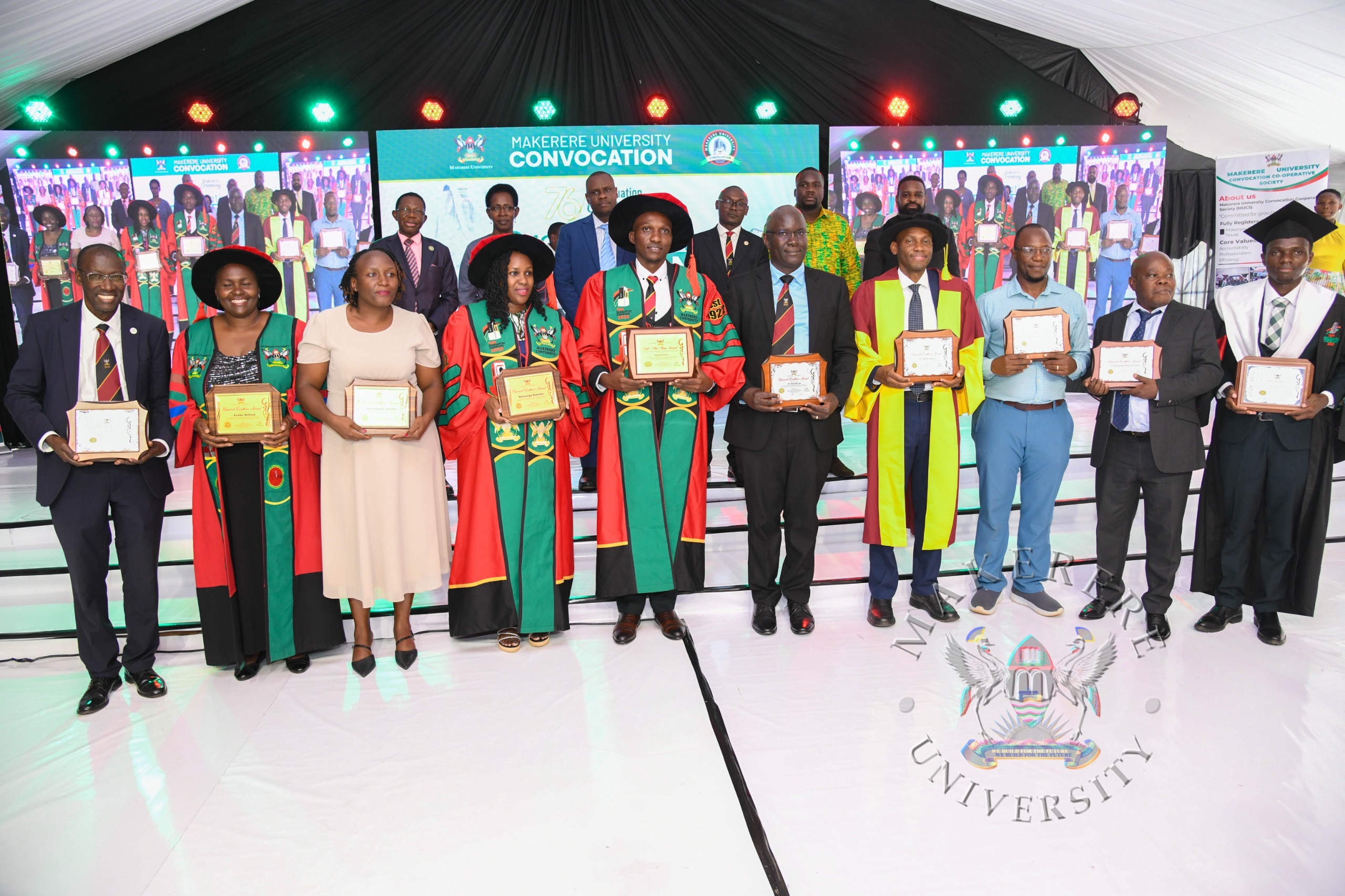 The Vice Chancellor also extended heartfelt appreciation to the parents and guardians for their unwavering support, and to the University’s development partners whose contributions have sustained Makerere’s research and innovation agenda. He acknowledged the generous support of organizations such as the Mastercard Foundation, European Union, NORAD, Sida, IDRC, KOICA, DAAD, NIH, CDC, USAID, Wellcome Trust, KfW, IUCEA, RUFORUM, ARUA, PLUS Alliance, WUN, AAUN, AAP, Madhvani Foundation, and the Government of Uganda through the Higher Education Students Financing Board.