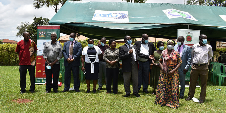 - Prof. John David Kabasa presenting his team of lecturers at COVAB while giving his remarks during the UVA- AGM on 31st March 2021 in the Ruth Keesling Gardens.